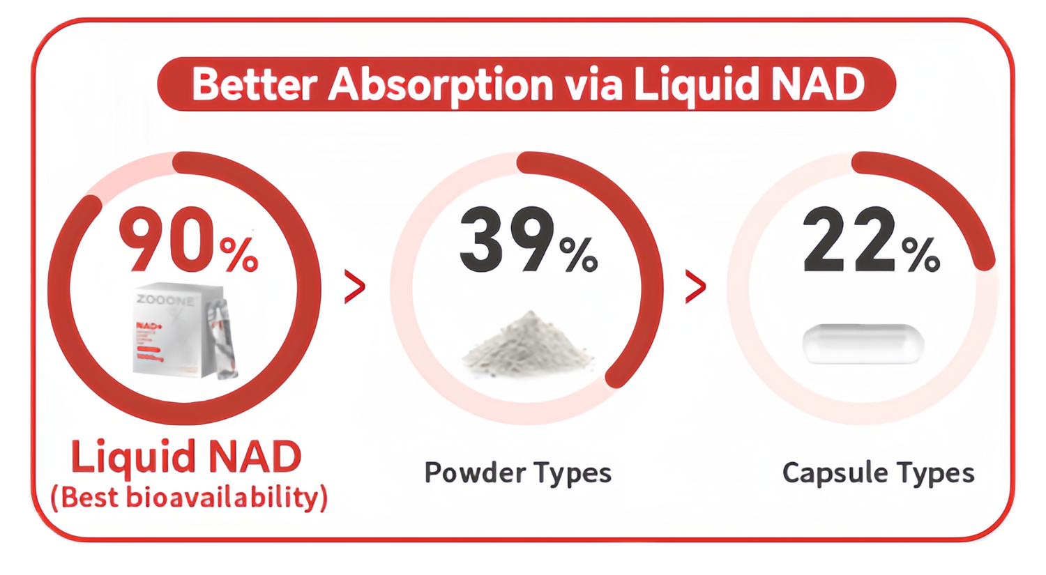 Unlike traditional capsules, our NAD+supplement uses a liquid formula for maximum absorption. This ensures thatthe body efficiently utilizes NAD+ for sustained energy, youthful skin, andoverall well-being.